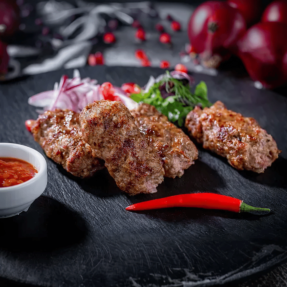 Кебаб из рубленой говядины со специями, приготовленный на мангале.
